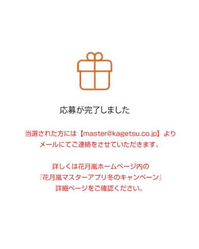 なお、当選者された方には【master@kagetsu.co.jp】よりメールにてご連絡いたします。
