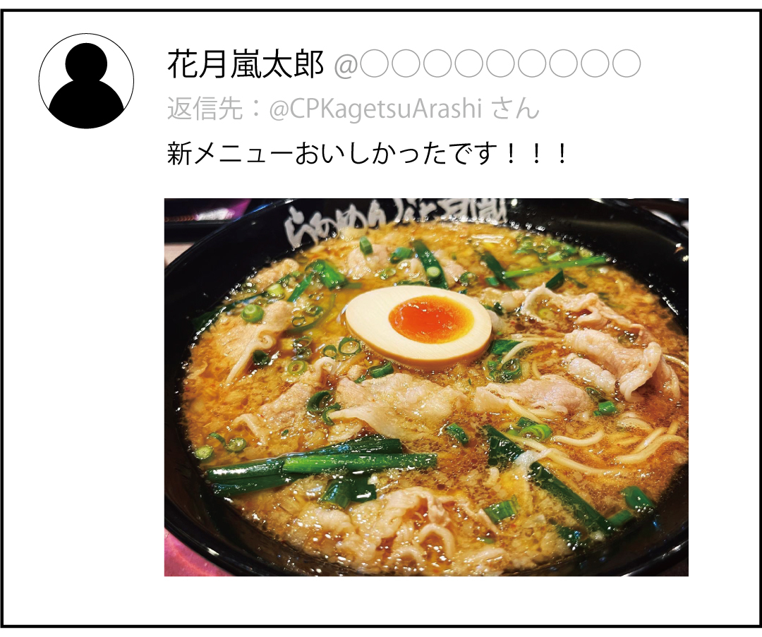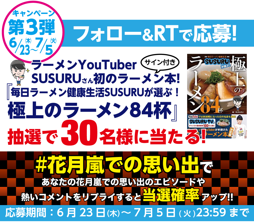 本キャンペーンは、『らあめん花月嵐公式Twitterアカウント(@CPKagetsuArashi)』をフォロー。その後、ご自身のTwitterから本キャンペーン対象のツイートをリツイートしてください。