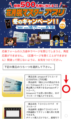 来店ポイント獲得のない応募は無効となりますので、予めご了承ください。