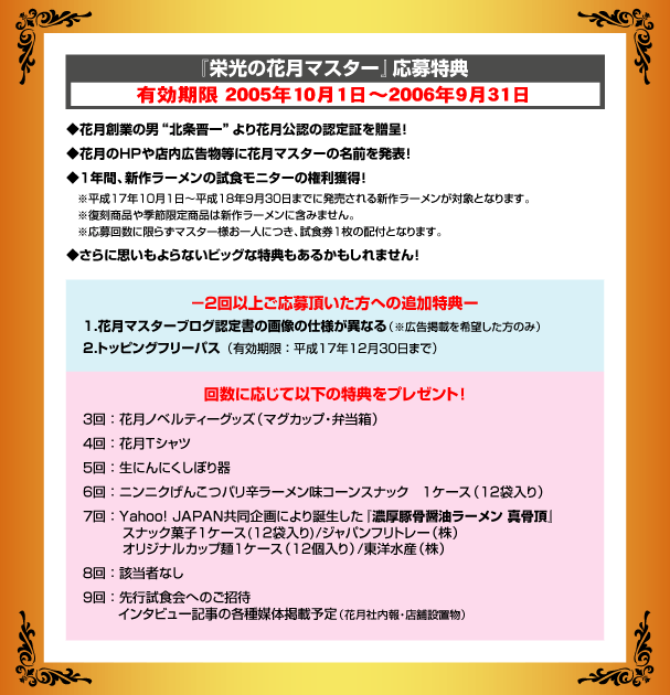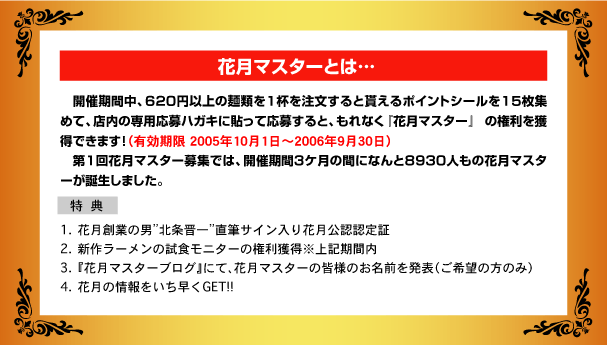 花月ファンのためのマスター企画[花月マスター5(ゴージャス)]が只今開催中です。 まだ、花月マスターに登録していない方は、今すぐ登録しよう!!