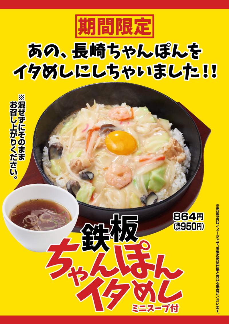 花月嵐TOP > メニュー > 期間限定メニュー > 期間限定メニュー「鉄板ちゃんぽんイタめし」告知