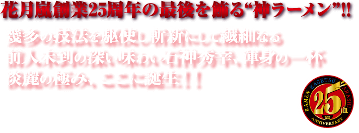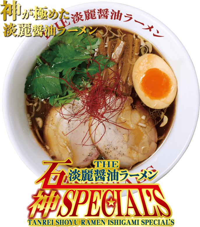 花月嵐TOP > メニュー > 期間限定メニュー > 期間限定メニュー「THE淡麗醤油ラーメン 石神SPECIAL'S」