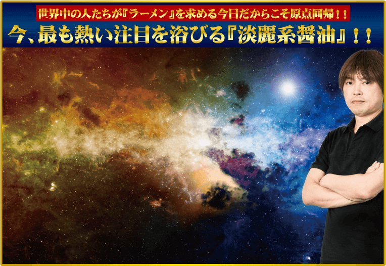 日本のラーメンの歴史をさかのぼると、昭和の高度経済成長期にかけて即席麺の登場もあり、一気に『醤油ラーメン』はメジャーな食文化に登りつめました。以降、札幌味噌や博多豚骨等のご当地ラーメンブーム、90年代後半にはダブルスープを皮切りに、スープ・オフやつけ麺といったジャンルも確立されていきました。21世紀に入ると様々な店主が創造性を発揮した個性的な創作ラーメンが多数生み出されました。 そして今日、ラーメンはこれまでにない新しい局面を迎えています。世界の人達が今最も注目している日本食の一つが『ラーメン』だというのです。その中でも世界のガイドブック等で多数紹介されるなどして原点回帰とも言うべき透明感のある醤油ラーメンが、改めて注目を浴びています。 それは、昔ながらのシンプルな醤油ラーメンではなく、従来はラーメンを作る際は想定外であった食材などを用いて全く新しいアプローチで生み出す澄み渡った、次世代の醤油ラーメンです。いつしかこのジャンルは『淡麗系醤油』というジャンルで呼ばれるようになり、今日では最も熱いラーメンのジャンルの一つとして確立されているのです