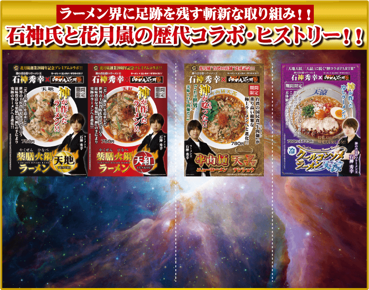 花月嵐の創業20周年を記念して初のコラボ作品『薬膳火鍋ラーメン天地天紅』が誕生しました。ラーメンは勿論のこと、幅広い料理の世界に精通している石神氏からの『美味しいのに身体に良いと言われる薬膳火鍋をテーマにしては?』という提案のもと実際の火鍋を研究し開発。本物の薬膳火鍋の様にノーマル味の『天地』そして辛口の『天紅』という2つの味が楽しめました。