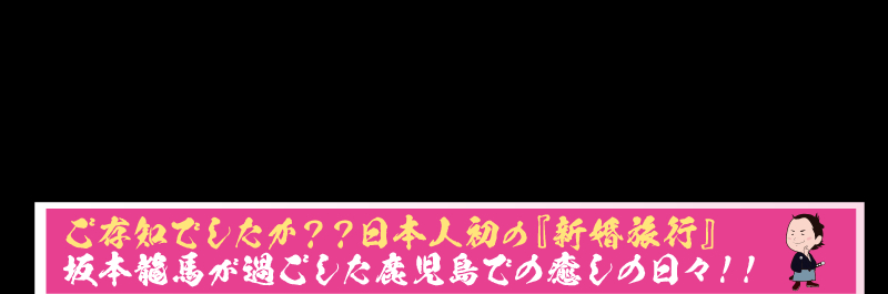 薩長同盟を取りまとめた数日後、京都伏見の寺田屋での襲撃から命からがら逃げ延びた、坂本龍馬。1866年に西郷隆盛らのすすめもあり、妻と共に、その傷を癒すために西郷さんの故郷である鹿児島の地を訪れました。観光に温泉など妻と仲睦まじく80日間以上を過ごしており、これがいわゆる日本初の新婚旅行と言われています。