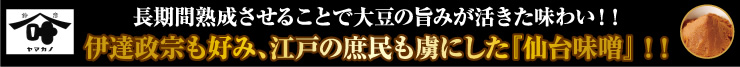 かつて伊達政宗は仙台城の城下に、蔵を設けて味噌を造らせてたそうで、 以降、仙台藩で味噌造りは盛んになったとのこと。江戸時代の後期になると、江戸にある仙台藩の屋敷で、その味噌は造られるようになり、 江戸庶民の間でも親しまれてたという。その製造方法の特徴は、他の味噌に比べて長時間じっくりと手間暇惜しまず熟成させるとのことです。 今回は仙台味噌の老舗『ヤマカノ醸造株式会社』製造の仙台味噌をラーメンに使っております。
