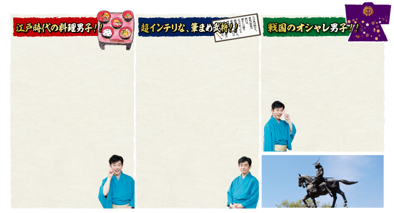 幼少時は、右目を失明し後ろ向きだった政宗。それを救ったのが今日でいう家庭教師役となった一人の僧侶でした。彼から様々な教えを受けることで、自らの逆境に打ち勝ち、武芸以外にも漢詩や書にも通じて、今日で言う、まさにインテリな武将へと成長したそうです。そして驚くべきは、その筆まめさ。部下に書かせる武将が多くいた中、政宗自ら筆を取って手紙を書いたそうです。その数、なんと3,000通にも及ぶとか。現存するだけで1,000通以上の手紙が残されているそうです。