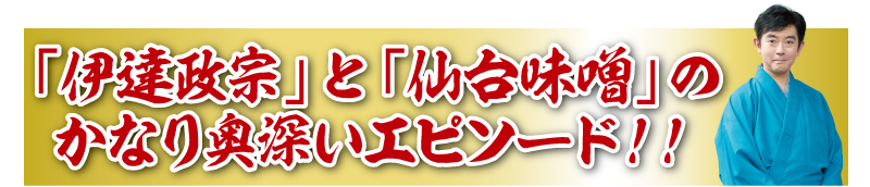文禄2年(1593年)、時の天下人であった豊臣秀吉の命のもと朝鮮へと出向いた政宗であったが、夏場のため、他の武将達が各々持参した味噌が劣化するなか、政宗の持って来た味噌は、変わらずに美味しく頂けたとされ、他の武将達にも喜ばれたという。一説によると、それが「仙台味噌」の原型となった味噌であるとも言われています。