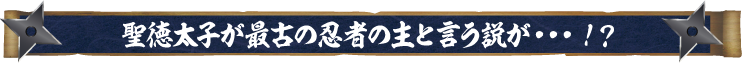 日本最古の忍者の主は、皆さんもご存知の聖徳太子だったという説があります。 「志能備(しのび)」と呼ばれる忍者の源流を使って、朝廷に関する様々なことを探っていたとのことです。ちなみに、最古の忍者は大伴細人(おおともの ほそひと)と言われており、甲賀出身で甲賀忍者の始祖と言われています。