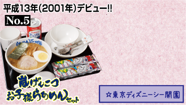 お子様待望の『ニンニクげんこつお子様ラーメン』誕生当時は、ラーメン単体のメニューだったが、一年後に単品のラーメンから、ジュース・お菓子のついたセットメニューへと変更された。
