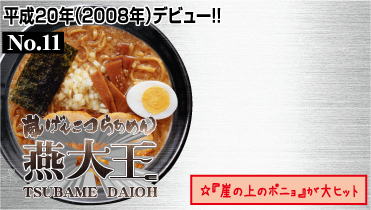 新潟県ご当地ラーメン『燕三条系ラーメン』からインスパイアされた創作作品。煮干しを効かせた背脂醤油味のスープに極太麺の組み合わせ。トッピングの刻み玉ねぎなど独特な試みが施されている。