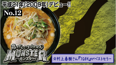 大量の背脂と太麺に、野菜を盛り付けた、圧巻の迫力を誇る味噌味の『モンスター』。以降、塩味、醤油味という『嵐げんこつシリーズ』の分家と言うべき『モンスターシリーズ』が発表されることとなる。