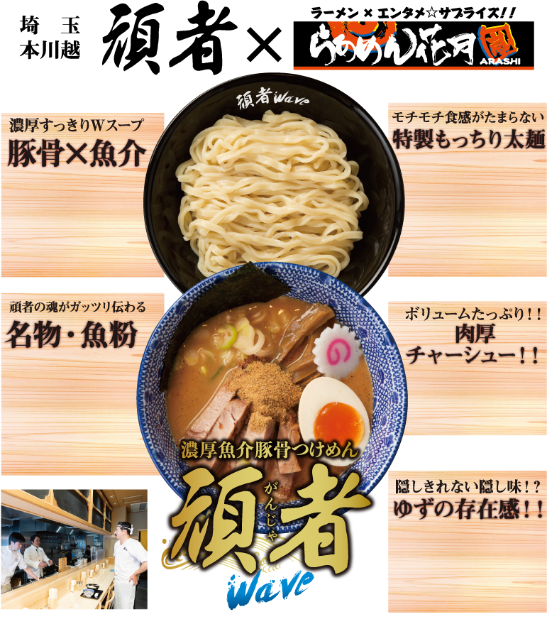 『頑者Wave』は、とにかく麺が“もっちもち”で美味しく仕上がっています。もしかするとウチの麺よりモチモチ感はあるんじゃないでしょうか!?スープに関しても、何度も何度も試作を重ねた結果、バランスの良いものに仕上がったと思います。花月嵐さんのレベルの高さを感じました。僕も自信を持ってオススメできる味に仕上がりましたので、沢山のお客様に召し上がって頂いて、いい波が起こせたらいいなと思います!!