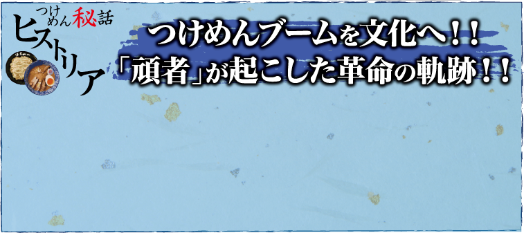 つけめんブームの火付け役。頑者店主・大橋英貴氏はその言葉通り、沢山の人たちに多大な影響を与え続け、今もその熱いWave(波)を起こし続けている。つけめんを全力で愛し、「つけめんの美味しさを伝えたい」という想いを頑なに表現し続ける、つけめんのパイオニア・大橋氏。その熱き言葉をとくとご覧あれ!!
