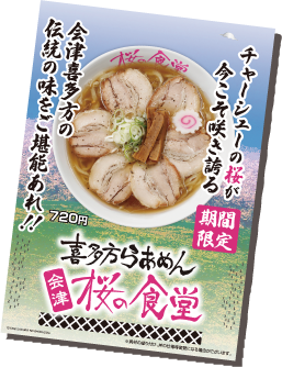 NHK大河ドラマ「八重の桜」の舞台でもある会津藩。喜多方市は、その北側にあったことから以前は「北方」と呼ばれており、明治8年、昭和29年の町村合併により「喜多方市」と命名されたと言われている。ちなみに「八重の桜」が放映された2013年、花月嵐では「喜多方らあめん 桜の食堂」を発売しており、その圧倒的な旨さからレギュラーラーメンにして欲しいという熱い声が飛び交った!!喜多方ラーメンがレギュラーに登場する日は来るのか!?