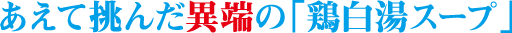 それはですね、以前の上司がすごく豚骨が苦手だったんです。それが強く印象に残っていて、自分がお店をやるときは万人受けする味を作りたいと思っていましたらから、それにぴったりくる味を探していたら「鶏白湯」という味に出会ったんです。