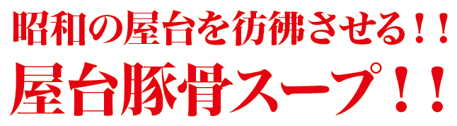 ほど良いパンチと、どこか心温まるマイルドな味わいが共存する豚骨ベースのスープ!!昭和の屋台で食べているかのような懐かしさを堪能しよう!!