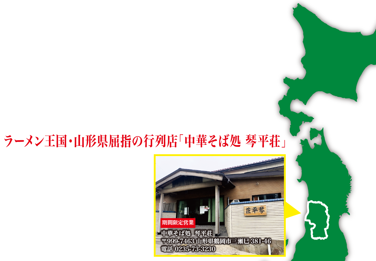 山形県鶴岡市にある冬季限定営業のラーメン店。元々は旅館として営業していたが、冬場の閑散期にラーメン店を始めたところ評判となり、全国からラーメンファンが訪れる山形屈指の大行列店となる。