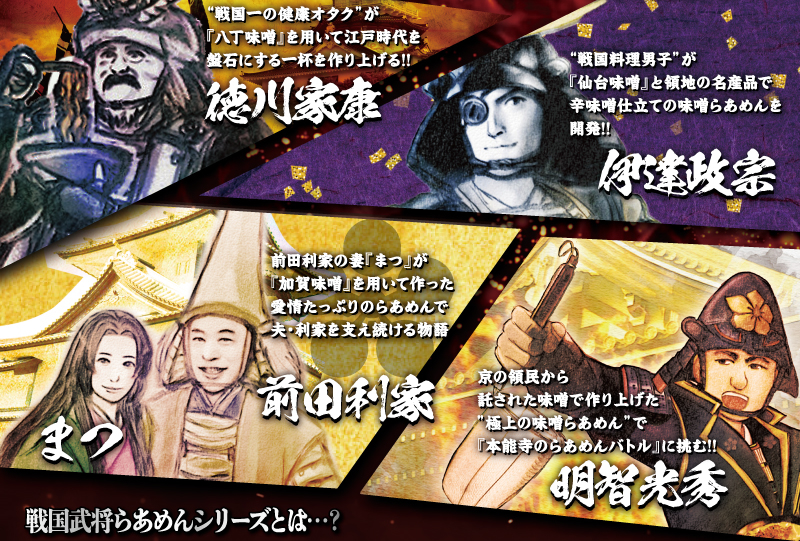 らあめん花月嵐の期間限定ラーメンシリーズの一つで、戦国武将をテーマに、その武将のイメージや、ゆかりのある地の名産物、 好んだ食べ物などを使用して“花月嵐ラーメンマエストロ(商品開発)”が開発した完全オリジナルラーメン。 第一弾は2017年発売の『戦国武将らあめん 家康公』。第二弾『伊達政宗』、第三弾『前田利家』、第四弾の『明智光秀』に続き、2021年9月に第五弾として『戦国武将らあめん 織田信長 〜らあめん天下布武への道〜』が登場。「トマト」と「マー油」を 合わせた型破りな一杯を発売。 そして2022年2月22日(火)に、その続編となる『戦国武将らあめん 織田信長2 〜らあめんの聖地“安土城”信長の夢〜』の 発売が決定!! らあめんの“無限の可能性”を追い求めた男、織田信長が新たに開発した“魔王の醤油らあめん”とは…? 商品の発売を記念して制作された花月嵐公式YouTubeチャンネルだけで見られるオリジナルストーリーもお見逃しなく!!