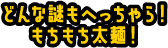 その名の通り「もちもち」とした食感が特徴でボリューム感もたっぷりの太麺!どんな謎にも負けない力強さと優しさでこの一杯を豪快に盛り上げる!