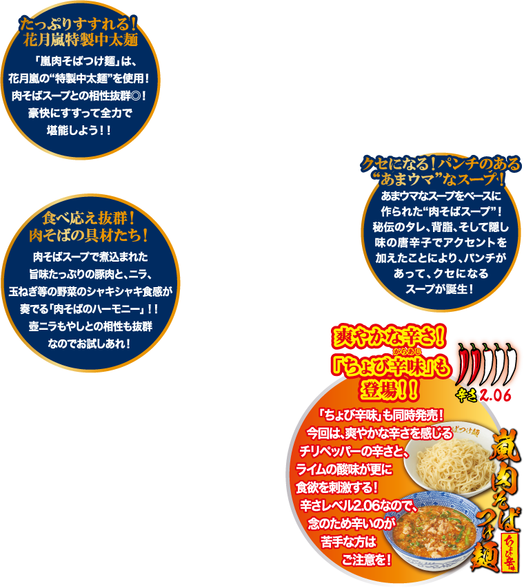 花月嵐TOP > メニュー > 期間限定メニュー > 期間限定メニュー「嵐肉そばつけ麺」
