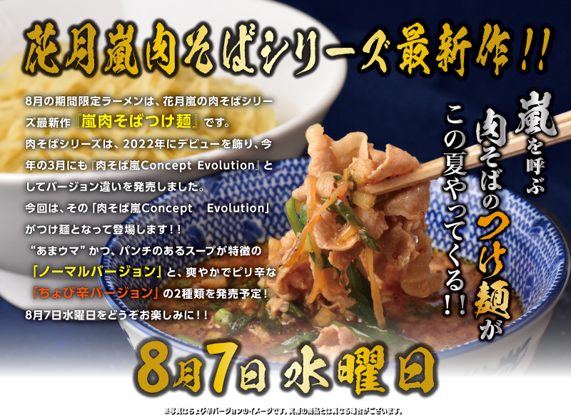 花月嵐TOP > メニュー > 期間限定メニュー > 期間限定メニュー「嵐肉そばつけ麺」