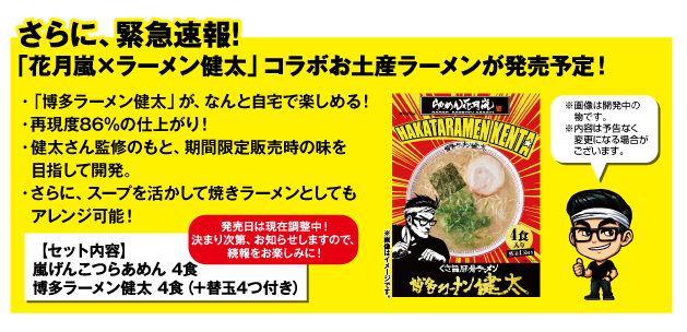 「博多ラーメン健太」と「明太焼きラーメン」は4月2日水曜日から全国の花月嵐で販売予定!!