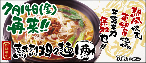期間限定ラーメン「熱烈坦々麺R」登場!!