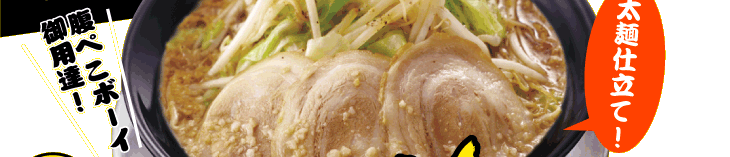 ・『濃厚醤油スープ』&『太麺仕立て』の腹ペコボーイご用達!!