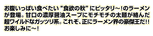 ・”食欲の秋”にピッタリな超ワイルドなガッツリ系ラーメン!!
