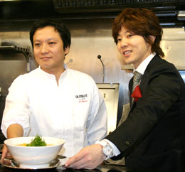 2010年11月24日、らあめん花月嵐笹塚店に於いて期間限定コラボ商品『僕の味噌ラーメン〜ボロネーゼバター添え〜』の記者試食会が行われました。