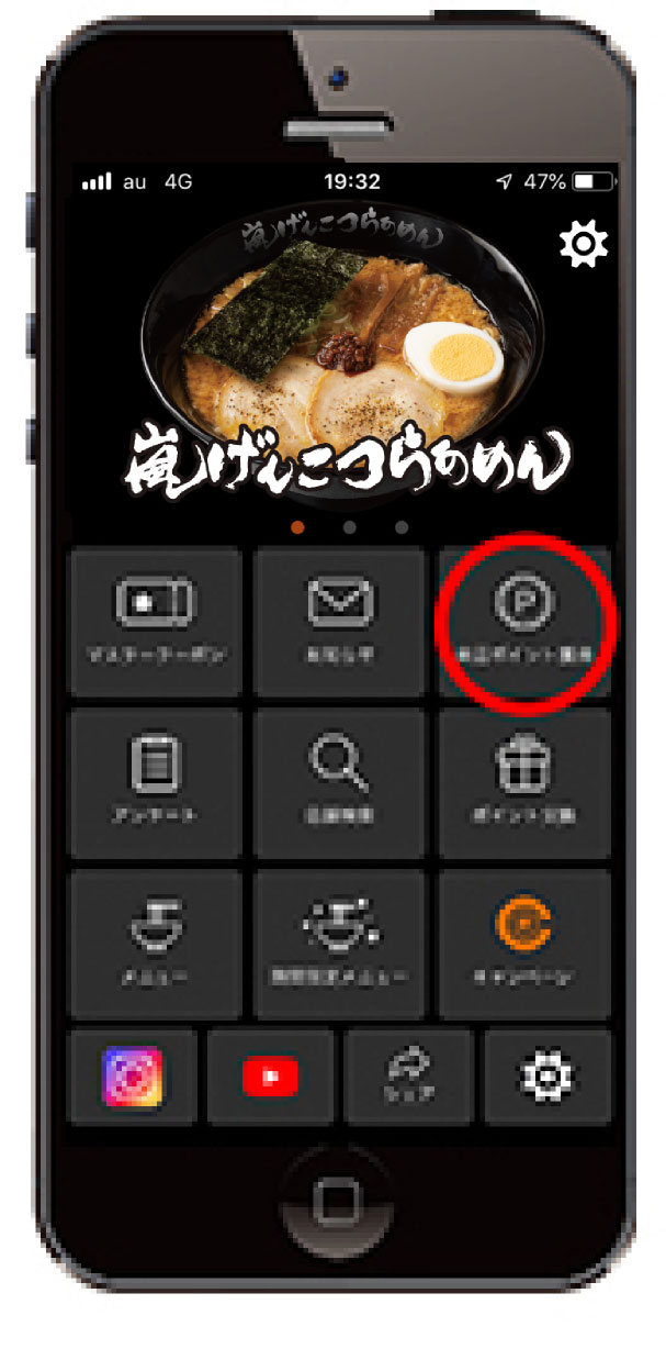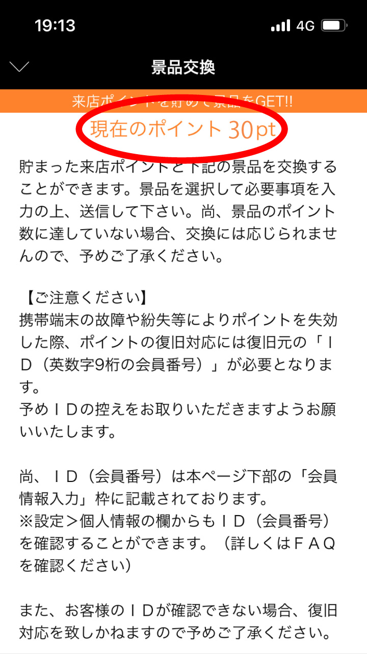 ページ上部に獲得済みの来店ポイントが表示されます。