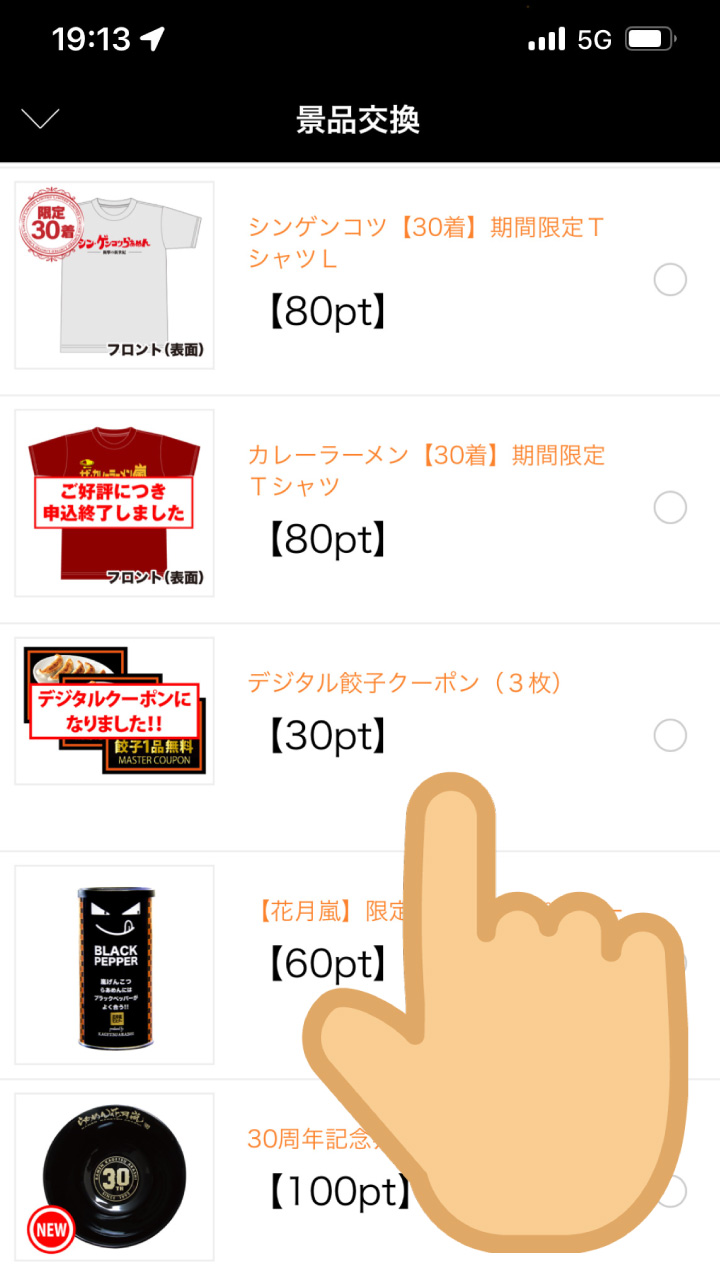 獲得ポイントで応募できる景品を選択して、タップしてください。
