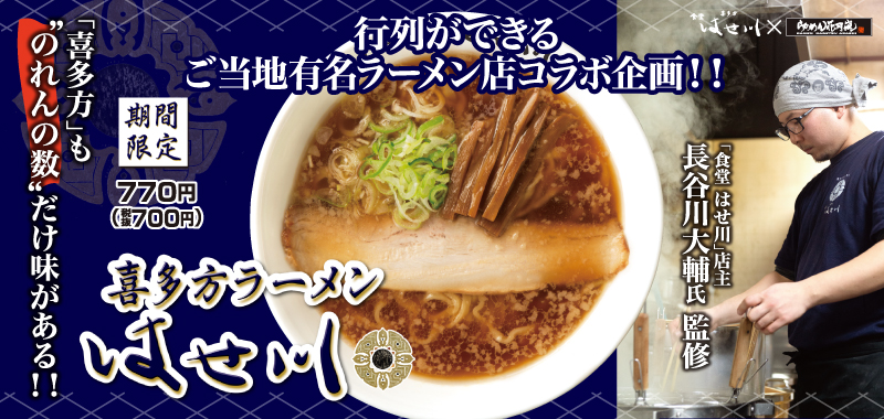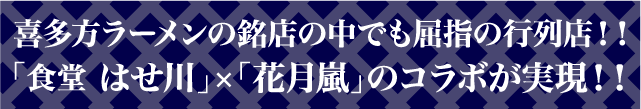2020年4月。日本三大ご当地ラーメンと称される「喜多方ラーメン」が花月嵐に登場する。今回は、喜多方ラーメンの銘店の中でも屈指の行列店「はせ川」2代目店主・長谷川大輔氏の監修を受け、喜多方ラーメンの進化系をテーマに開発が行われた。東京と喜多方を何度も行き来しながら、完成度を高め、会心の一杯が完成。まさに今、この瞬間しか食べることのできない喜多方の味を是非お召し上がりください!!