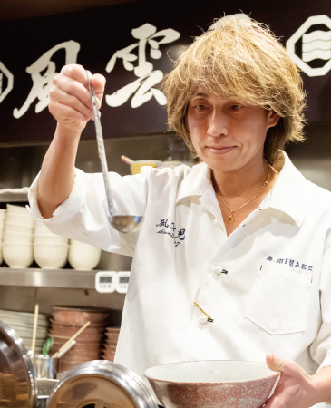 1969年愛媛県生まれ。1986年スカウトで芸能界入りし、CM・ドラマ・映画・舞台などに出演。1993年に帰郷し結婚式場の司会業に就く。1996年、飲食業界の新規事業に誘われ、イタリアンレストランの料理長、店長、スーパーバイザー、同グループ企業のホテル支配人を経て、取締役となる。ある日、ラーメン業界で活躍する仲間と共にラーメンを食べ歩き、ラーメンの奥深さに感銘を受ける。その想いを形にする為、2007年に「(株)Dream Gate」を設立し、東京新宿に「風雲児」をオープン。規格外の「鶏白湯」をベースにしたつけ麺で、瞬く間に大行列店を作り上げた。