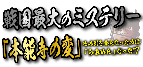 戦国最大のミステリー「本能寺の変」の引き金となったのは「らあめん」だった!?「天下一のらあめん」の座をかけた戦いの火蓋が、ここに切って落とされる…!!『敵のらあめんは本能寺にあり…!? 』