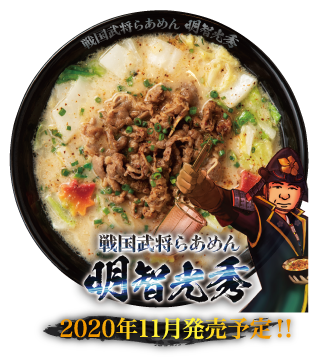 そして、今回11月4日(水)に発売するのが、『戦国らあめんバトル』に挑んだ明智光秀の渾身の一杯!!京都の食材を用いて作った、繊細かつ大胆ならあめん。