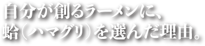 独立を決めて、自分で創るラーメンに“蛤(ハマグリ)”を選んだのは、僕自身が“蛤”が大好きだったからです(笑)。それと、当時(2006年)はまだ“蛤のラーメン”で勝負している人が誰もいなかったからというのもあります。限定で提供されていたお店はあったのかもしれませんが、勝負しているお店はなかったと思います。自分でやるからには、オンリーワンへのこだわりは絶対に譲れなかったので、大変なことになるのはわかっていましたけど、選んじゃいましたね“蛤”を。そして予想通りとても大変な目にあいました(笑)