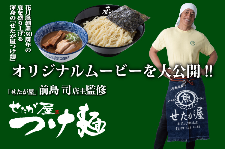 花月嵐にご来店の皆様こんにちは せたが屋店主の前島司です。 今回、花月嵐さんと作り上げた“せたが屋つけ麺”は 僕が大事にし続けてきた“せたが屋の味”を 可能な限り再現して頂きました! 花月嵐さんの創業30周年イヤーという特別な夏を 盛り上げていけたら最高に嬉しいです!