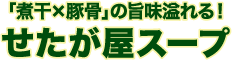 前島店主の情熱が宿る“せたが屋スープ”。せたが屋創業以来、常に改良し、愛し続けてきた、前島店主の魂。煮干と豚骨の旨さを存分にご堪能あれ!