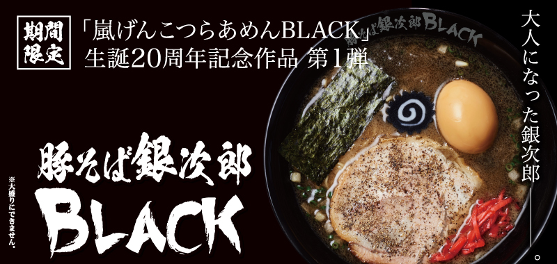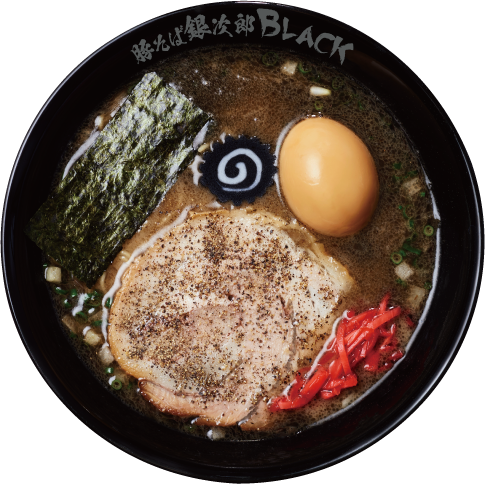 もともと銀次郎に使用されている“大判チャーシュー”に、大量のブラックペッパーが加わりパンチ力倍増!キリっとした大人の魅力が堪能できる!