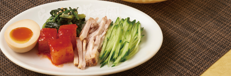 今回の冷麺は、具材を別盛りでご提供。 - まずは、スープと麺それぞれの味わいをそのままお楽しみください。その後、お好みで具材を少しずつ加えることで、食感と風味の変化が生まれ、一杯の中に広がる多彩な表情をお楽しみいただけます。