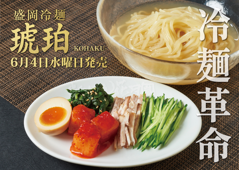 これまで何度も試作を重ねながらも、冷麺ならではの独特な食感を納得できるレベルで再現するのが難しく、これまでお届けすることができなかった「冷麺」。 本場・盛岡の老舗製麺所「中野製麺」の麺を取り寄せることで、ようやく自信をもってお届けできる一杯が完成しました。 今回登場する『盛岡冷麺 琥珀(こはく)』は、中野製麺の特製麺と、丁寧に整えた旨味と甘さの冷製スープが織りなす、こだわりの一杯です。